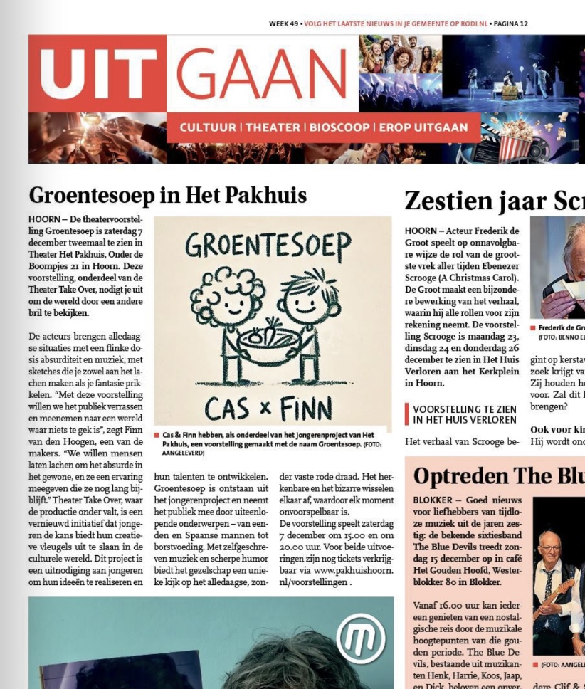 Berichtgeving voorstelling in Hoorns Nieuwsblad